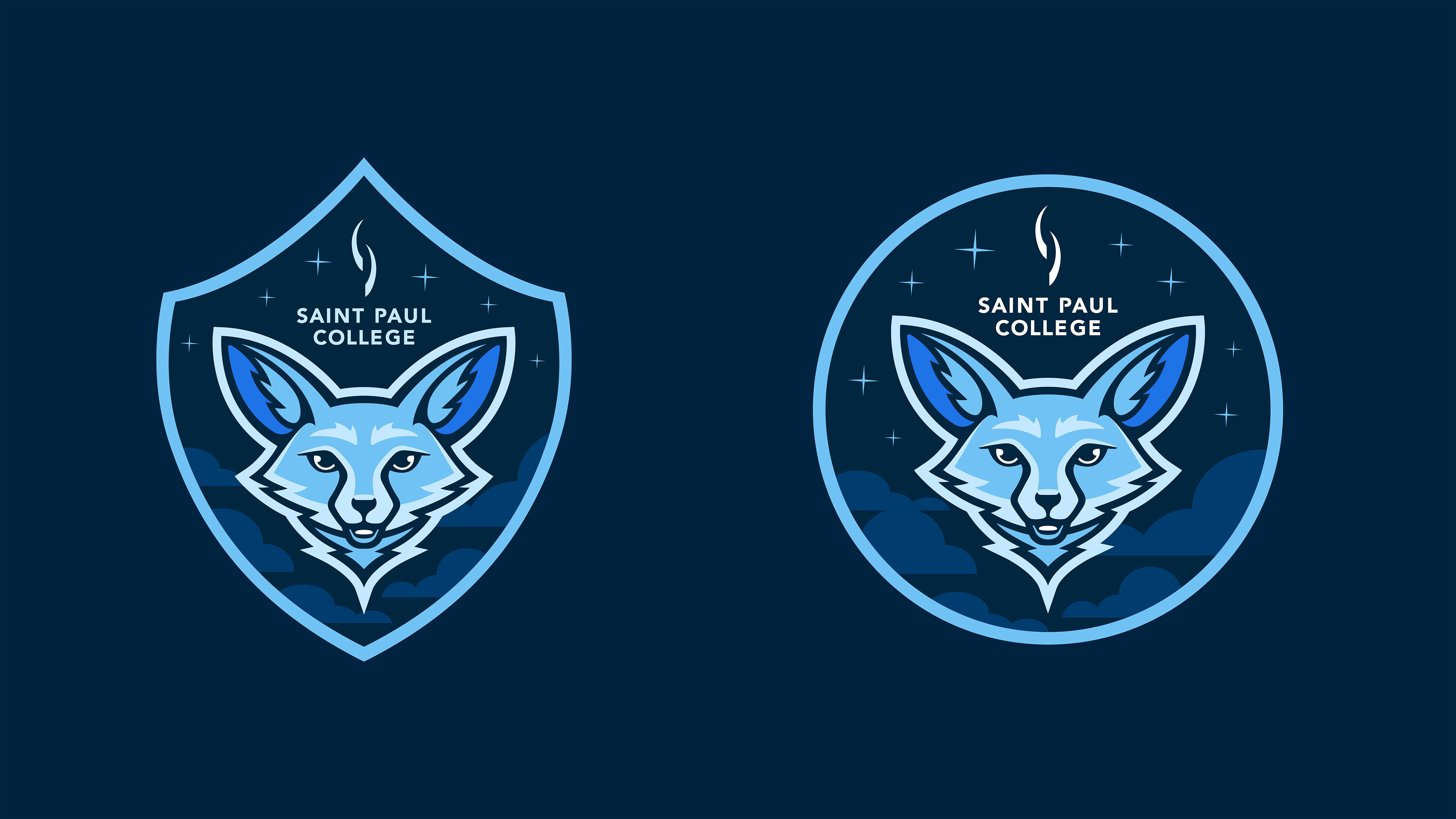 We designed the new spirit mark and mascot Sky Fox for Saint Paul College in 2025. This included an identity system focused on Sky. We created a badge and crest to have co-branded elements of the college logo paired with Sky. We demonstrated how to bring Sky to life in merchandise and in branding.